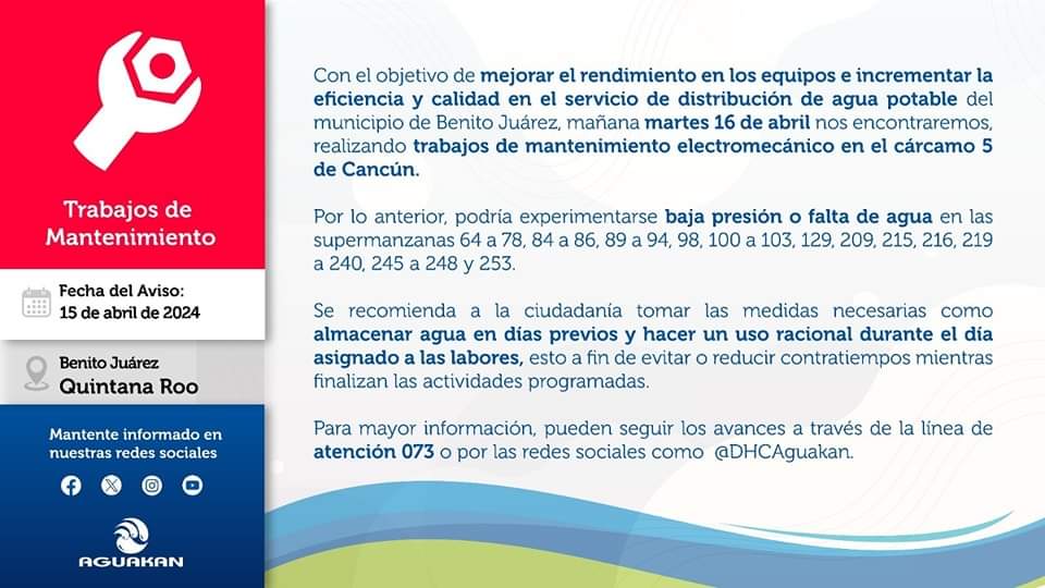 Se realizará trabajos de mantenimiento electromecánico en el cárcamo 5 de Cancún. Cancún(Marcrix Noticias).- Aguakan indicó que para mejorar el rendimiento en los equipos e incrementar la eficiencia y calidad…