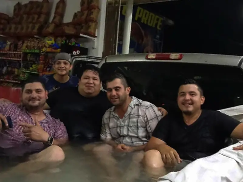 Debido a las altas temperaturas que se viven en Nuevo León llevaron a que un grupo de jóvenes en General Terán convirtieran la caja de una camioneta en alberca. Sí,…