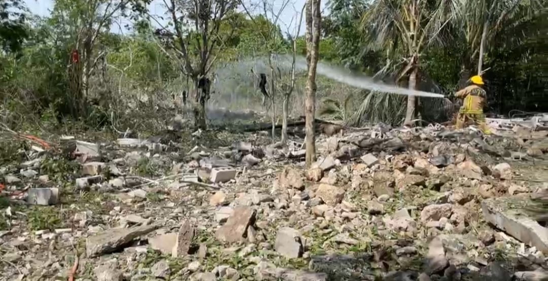 Probablemente un corto circuito la causa de que la dinamita explotara Felipe Carrillo Puerto (Marcrix Noticias)- Un inmueble habilitado como bodega del Tren Maya fue destruido por una explosión en…