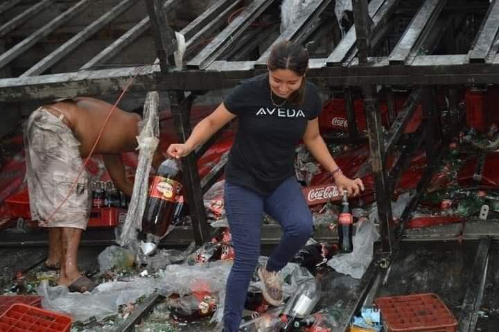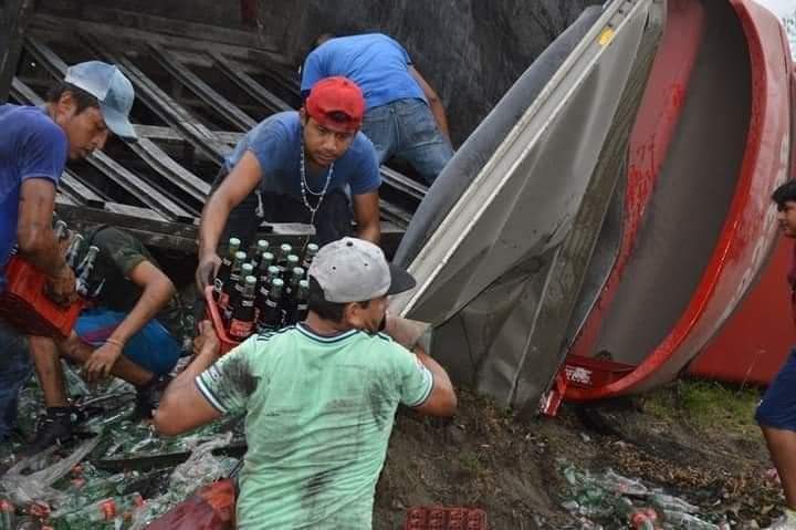 Los hechos ocurrieron en el municipio de Chinampa de Gorostiza, Veracruz, donde el conductor de un tráiler de Coca Cola terminó perdiendo el control de la pesada unidad y se volcó sobre la carretera, lo que ocasionó que en segundos, cientos de habitantes arribaran para llevarse los refrescos que llevaban.