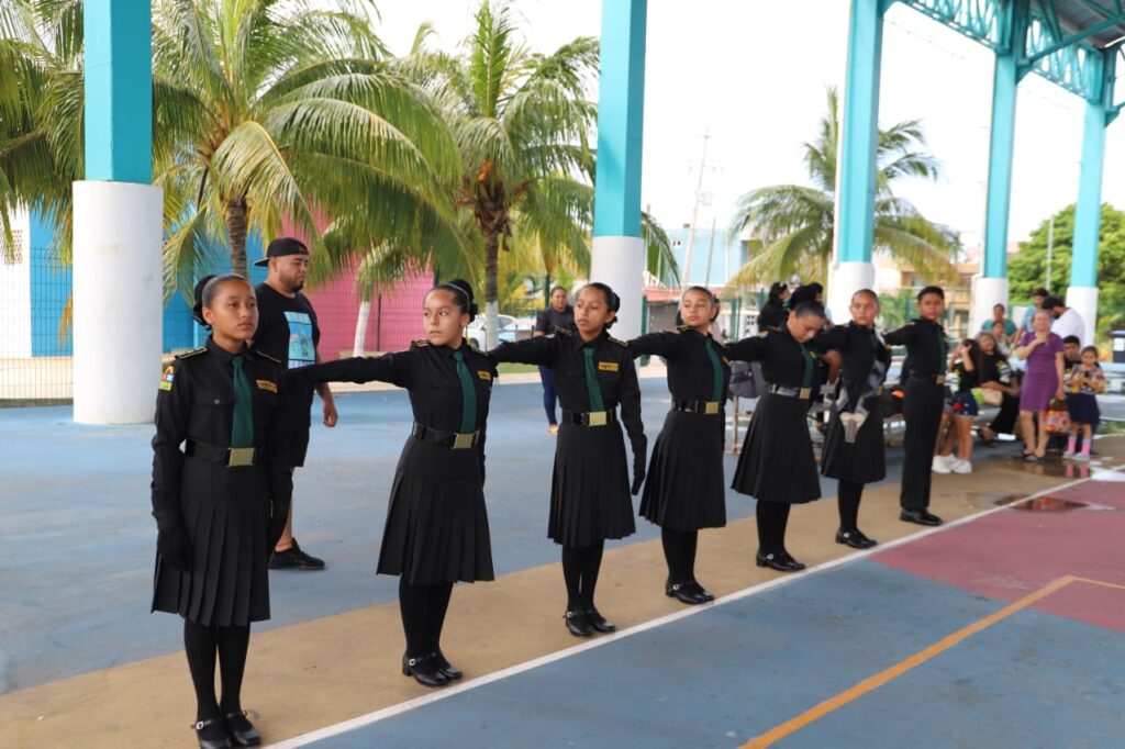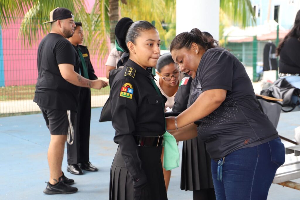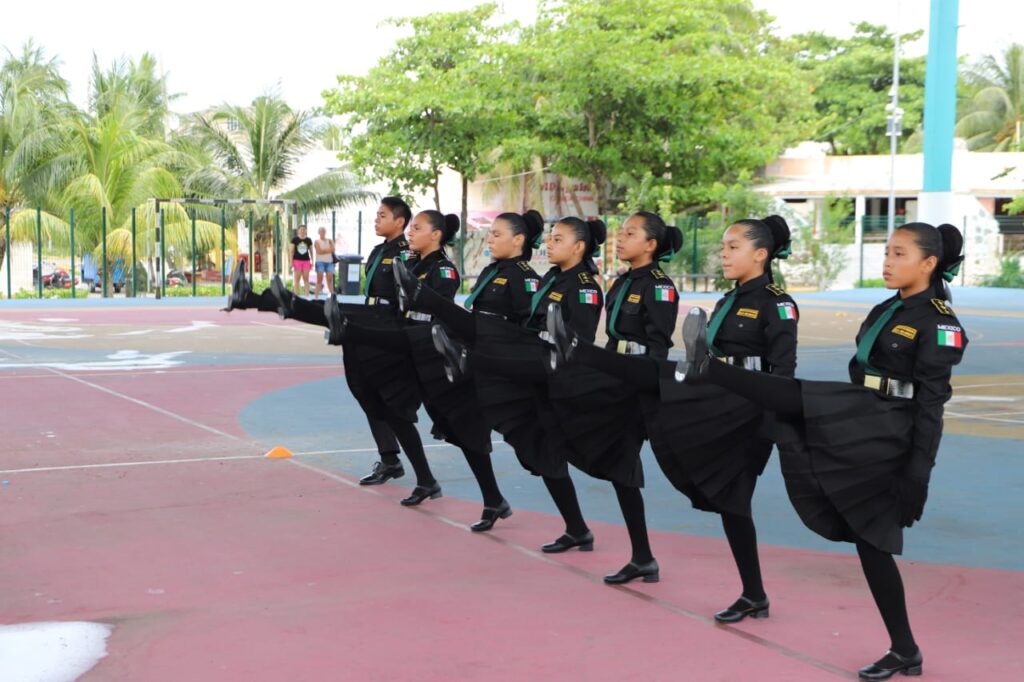 Por su parte, el profesor de Educación Física, Víctor Méndez Cimé, explicó que la escolta la conforman 7 integrantes de los cuales 6 son niñas y un niño, pertenecientes en su mayoría (6) a la primaria “Julio Sauri Espinosa” Turno Vespertino (TV) y a la primaria “César Mendoza Santana”(1).