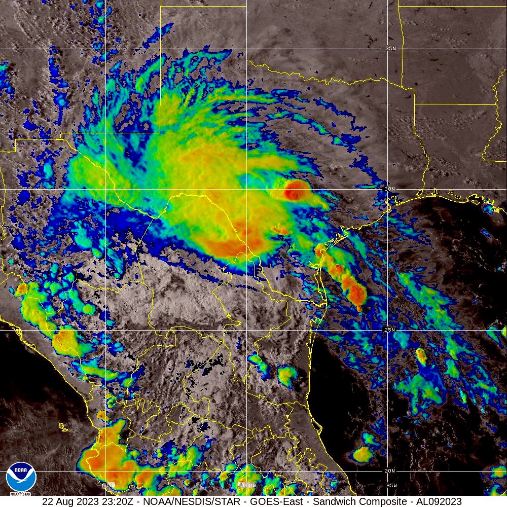Se espera que durante las próximas horas la zona esté sometida a intensas lluvias y fuertes vientos, pero el debilitamiento de Harold se hará constante a medida que se adentre sobre Texas y el norte de México y hoy mismo se convertirá en una depresión tropical.