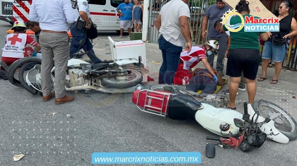 Cancún(Marcrix Noticias).- La mañana del miércoles 11 de octubre se registró un fuerte accidente en las inmediaciones de la Supermanzana 520 de Cancún, en el que se vieron involucrados 2 motociclistas.