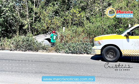 Cancun (Marcrix Noticias).- La tarde de hoy domingo se registró una volcadura de un vehículo sobre la avenida Lakin, sobre la Región 106 de Cancún.