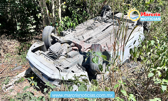 El automóvil se salió de la cinta asfáltica Y terminó volcado con las llantas hacia arriba dentro de la maleza.