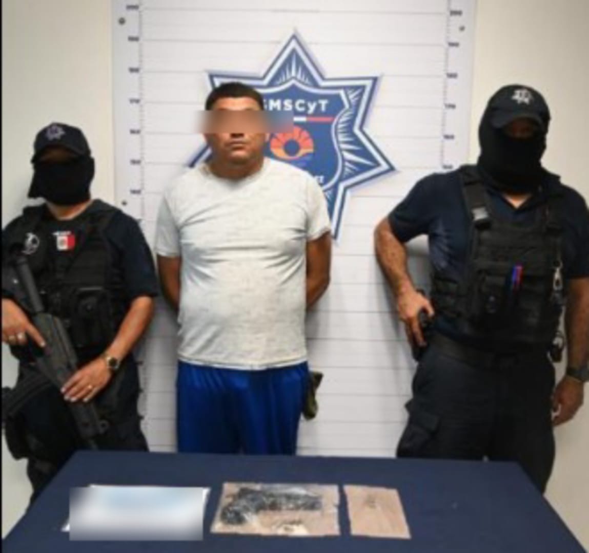 La detención se llevó a cabo tras un reporte recibido por los elementos en labores de vigilancia, quienes acudieron a la supermanzana 259, manzana 104, fraccionamiento Villas Otoch Paraíso.