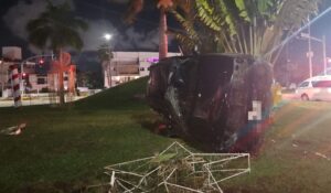 El primer incidente ocurrió a las 00:30 horas en la intersección de las avenidas Bonampak y Uxmal, en la entrada a Puerto Cancún. Un Ford Explorer negra perdió el control al tomar una curva, chocó contra una guarnición y volcó sobre su costado derecho tras impactar una palmera y adornos navideños. El conductor abandonó el lugar antes de que las autoridades llegaran.