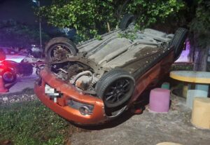 Minutos después, a las 06:05 horas, en la avenida Chac Mool con calle 22, un Suzuki Ignis rojo volcó sobre su techo. El conductor también se retiró del lugar, dejando el vehículo abandonado.