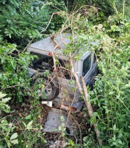 Otro accidente se reportó a las 05:13 horas en la avenida Kabah, frente a La Gas, en la Supermanzana 17. Una Ford Escape gris terminó volcada sobre su costado izquierdo tras chocar contra un poste de concreto.