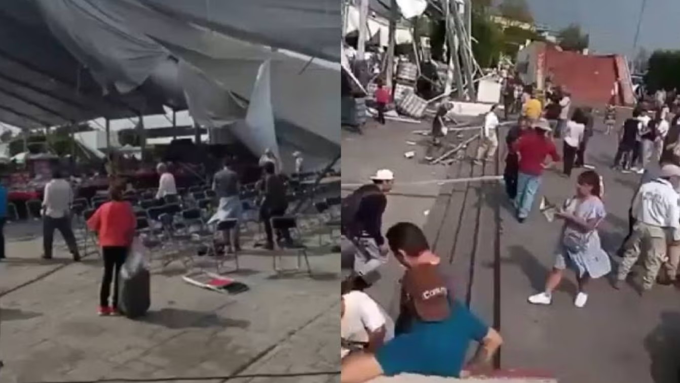 El desplome ocurrió a causa de los fuertes vientos, mientras se desarrollaba el evento en Nezahualcóyotl y las actividades fueron suspendidas.