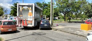 Chetumal (Marcrix Noticias)- En el cruzamiento de la avenida Bugambilias con Avenida 4 de Marzo, un camión que transportaba cervezas colisionó a un automóvil sedan, provocando una larga fila de vehículos.