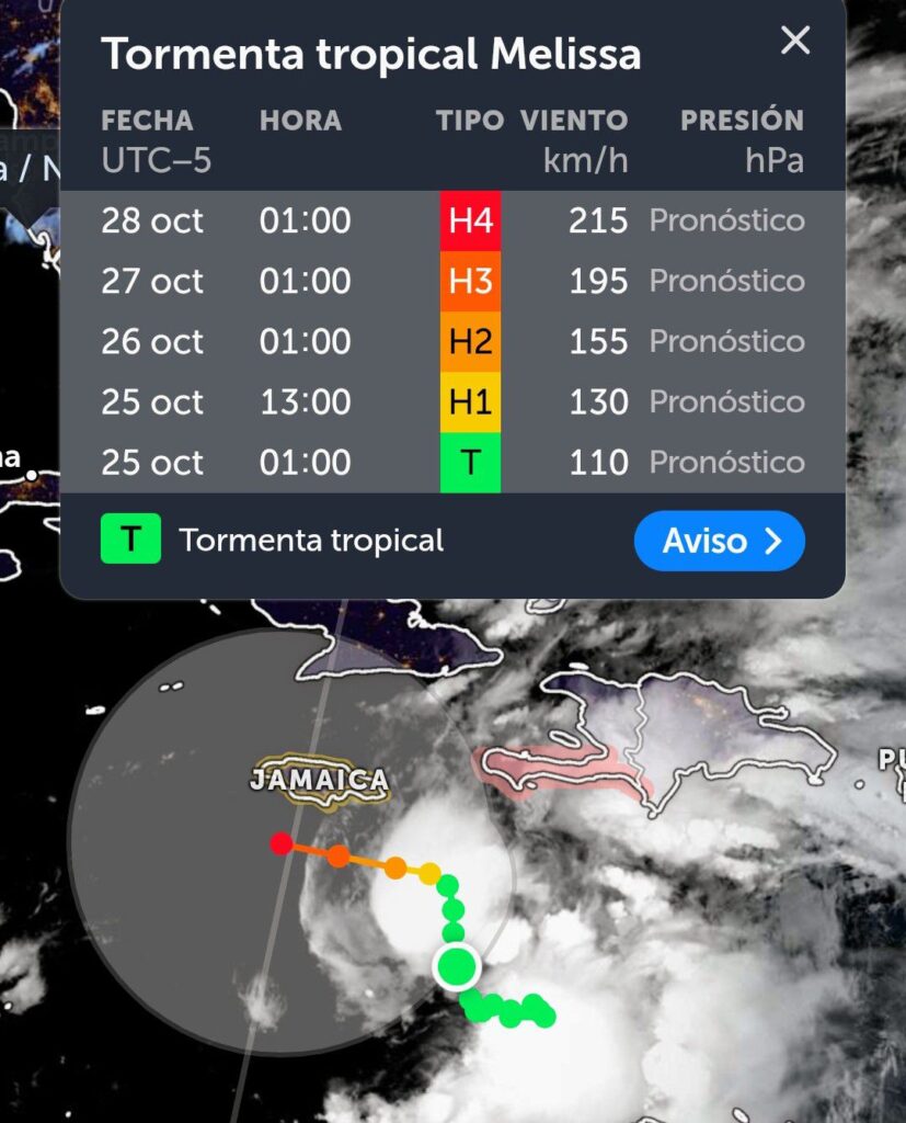 Aunque aún no hay una trayectoria definitiva, los modelos meteorológicos indican dos posibles rutas: si la corriente en chorro arrastra a Melissa hacia el norte, podría afectar directamente a Haití o República Dominicana este fin de semana; de lo contrario, permanecería al sur de Jamaica, sobre las aguas más cálidas del planeta, lo que aumentaría su potencia.