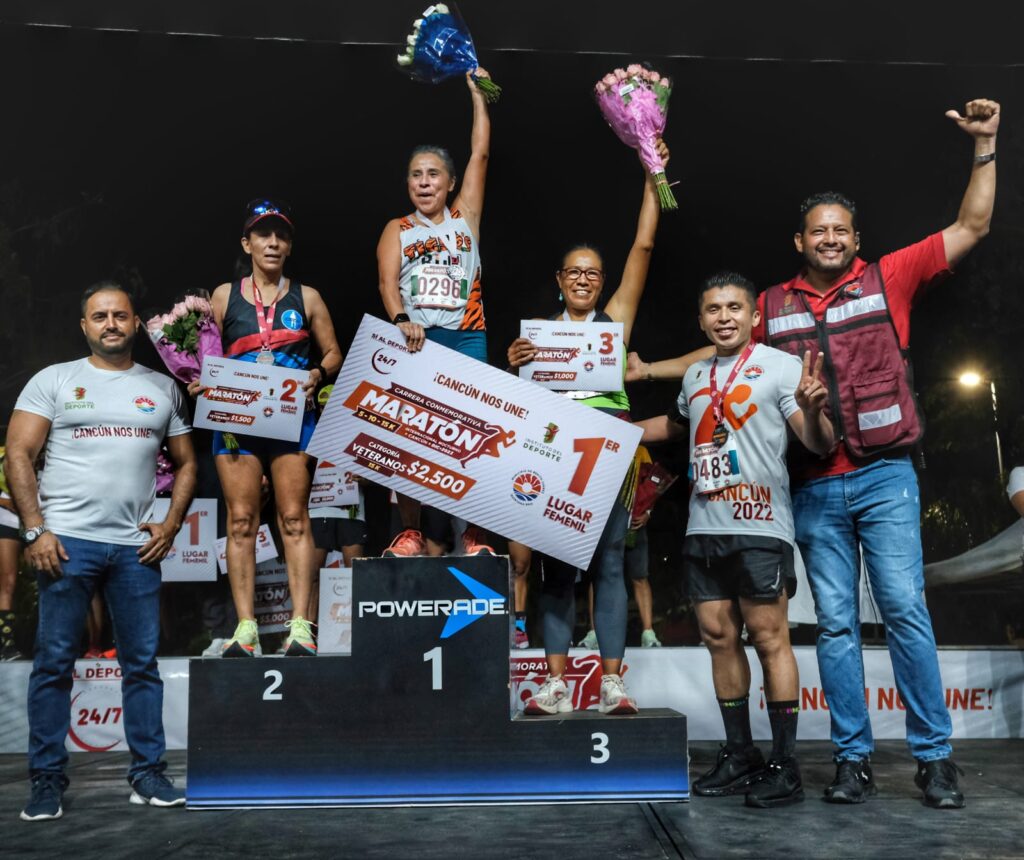 Participa como corredora y da el arranque en la carrera Conmemorativa al Maratón Internacional de Cancún, que reúne a mil 200 atletas en la avenida Bonampak, inmediaciones de Malecón Tajamar