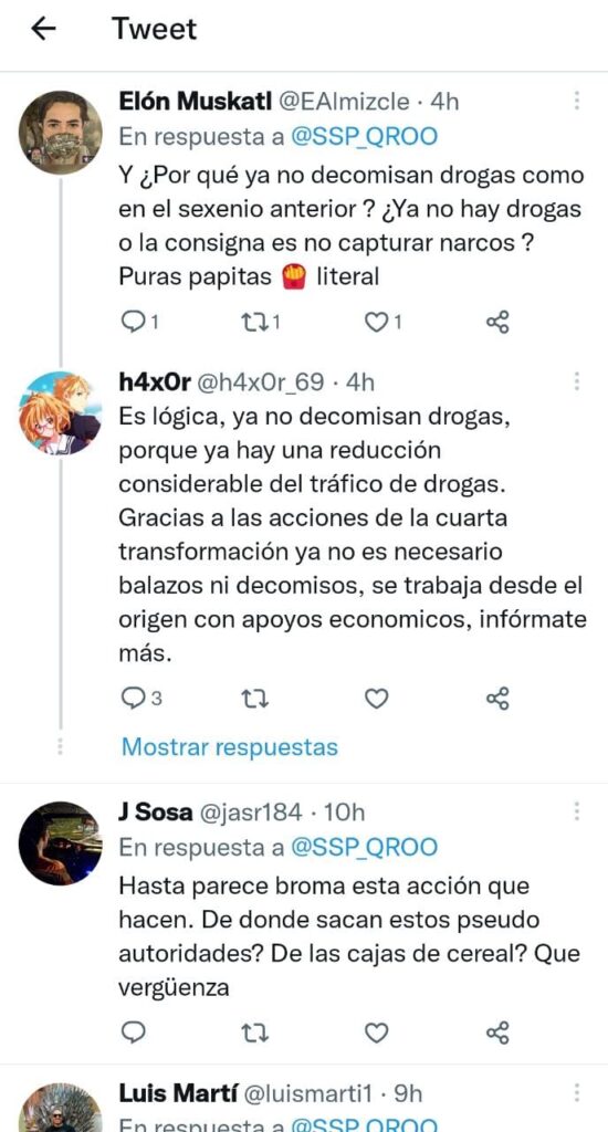 Cancún(Marcrix Noticias).- Luego de que la Secretaría de Seguridad Pública de Quintana Roo anunciara con bombo y platillo la detención de un ladrón de sabritas, los quintanarroenses se volcaron a las redes sociales para exigir un verdadero combate a la delincuencia y no simulaciones.