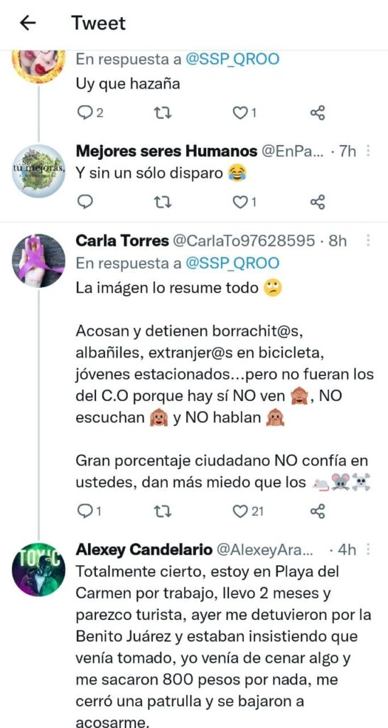Fueron varios los quintanarroenses que expresaron su inconformidad contra las acciones que emprende Seguridad Pública en Quintana Roo, pues consideran que contra los que deben actuar no lo hacen.