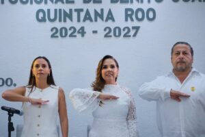 -Junto con representantes de los Poderes, la gobernadora de Quintana Roo preside la sesión solemne del aniversario 55 de Cancún