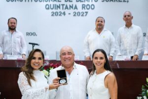 Cancún, (MARCRIX Noticias), .- “Hoy es uno de esos días que marcan la historia, hoy celebramos 55 años de Cancún, una ciudad que cuenta con personas que con su vida le dan sentido, alma, rumbo a un lugar” expresó la gobernadora Mara Lezama Espinosa en la sesión solemne del Ayuntamiento de Benito Juárez en conmemoración del 55 aniversario de Cancún y la entrega de la Medalla al Mérito Ciudadano “Sigfrido Paz Paredes”.