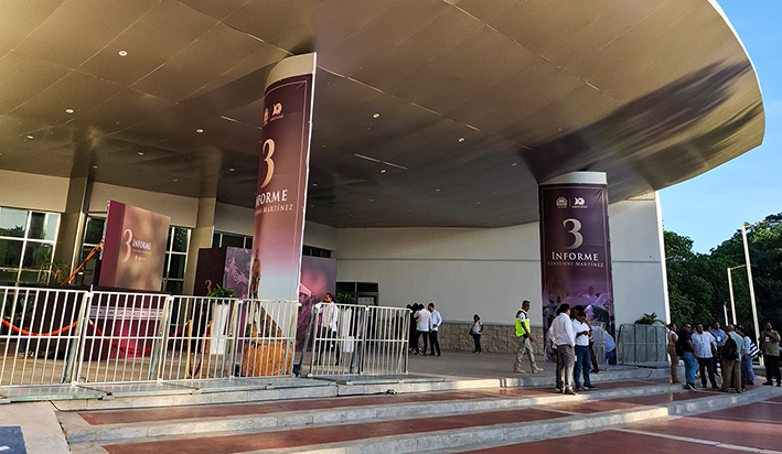 Denunciaron que prohibiendo el acceso a la población sin invitación al teatro de las instalaciones de la UQROO, pese de haberlo llamado “Informe Abierto a la Población”.