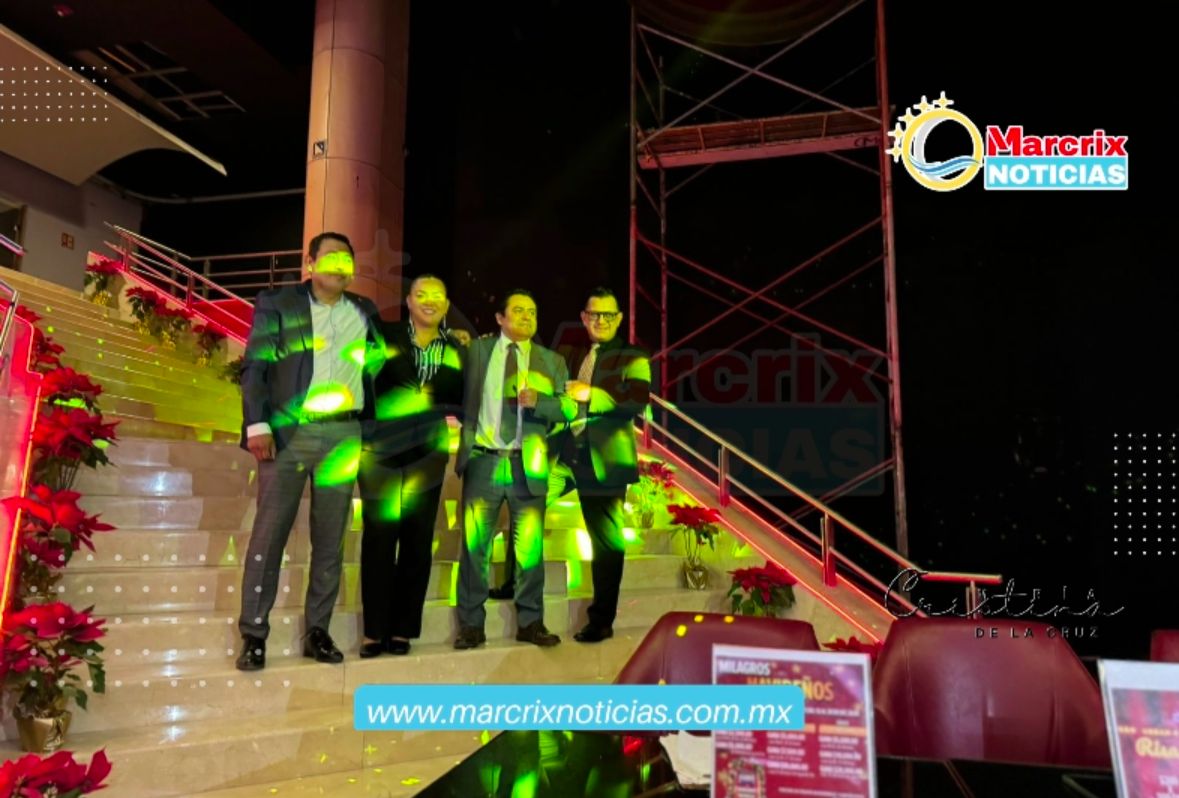 Daniel Luna gerente general del Casino Royal Yak, Sergio Ortiz, director general de espectáculos, Jonatan Mondragón asesor general  y Belem Velazco subgerente, quienes presentaron la cartelera de espectáculos para los días 29, 30 y 31 de diciembre 2024.