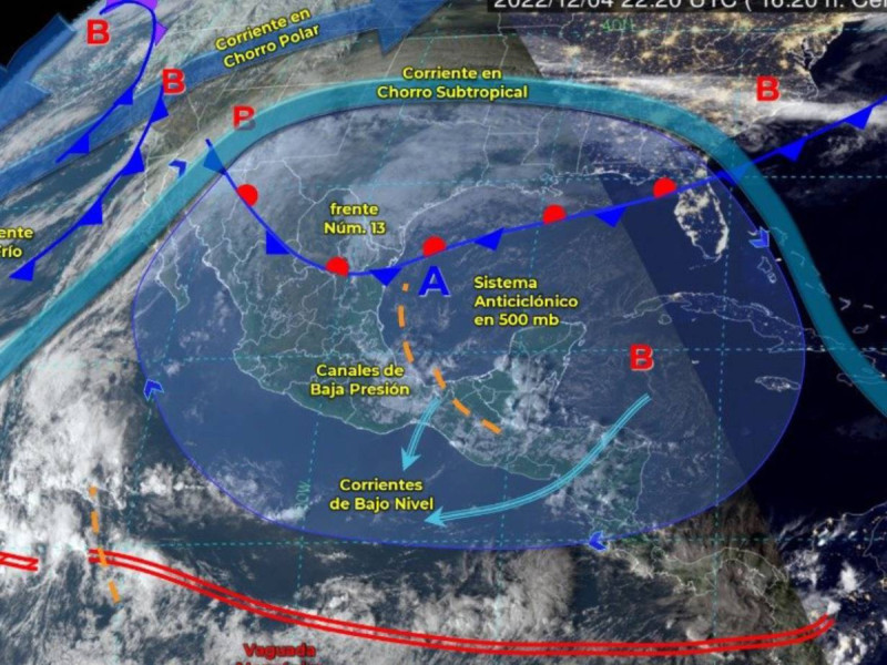 El ingreso de humedad generado por la corriente en chorro subtropical, ocasionará lluvias puntuales fuertes en Sonora y Chihuahua, además de chubascos en la Península de Baja California y en el norte de Durango y Sinaloa.