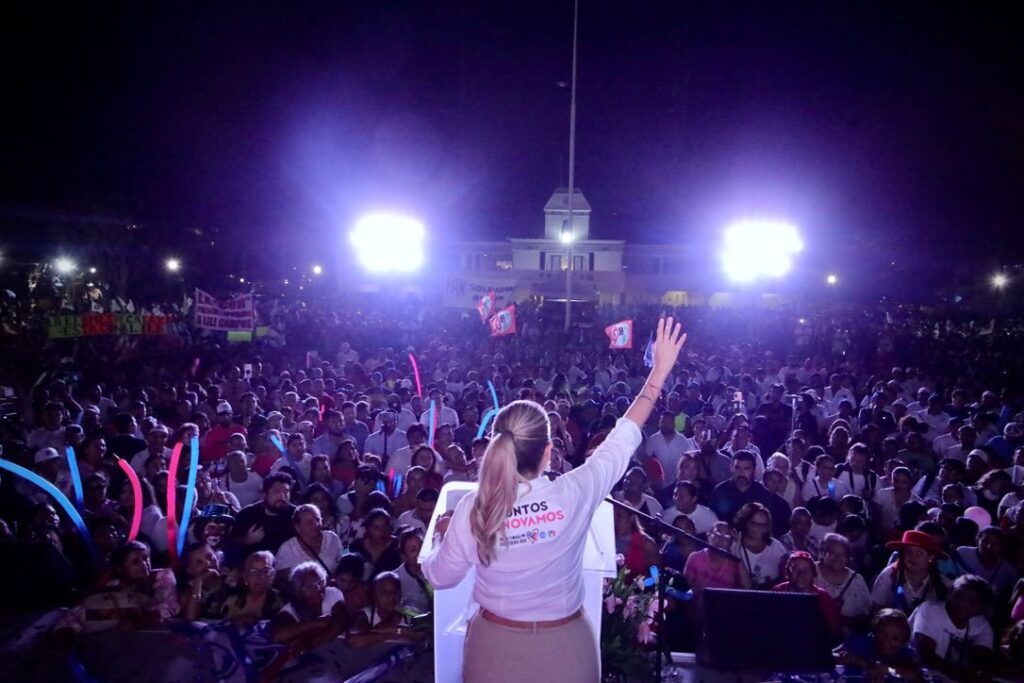 Playa del Carmen, Marcrix Noticias.- Ante más de 10 mil ciudadanos que se congregaron para respaldarla para la búsqueda de la presidencia municipal de Solidaridad por la alianza “Fuerza y Corazón por Quintana Roo”, la candidata Lili Campos Miranda aseguró que continuará con la renovación que sacó al municipio del lamentable estado que lo dejó la pasada administración de Morena.