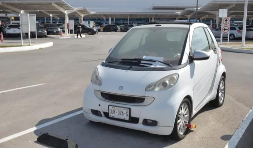 El automóvil, que cuenta con capacidad para dos plazas, fue inmovilizado con un candado en la rueda delantera izquierda por parte de la concesionaria aeroportuaria ASUR.