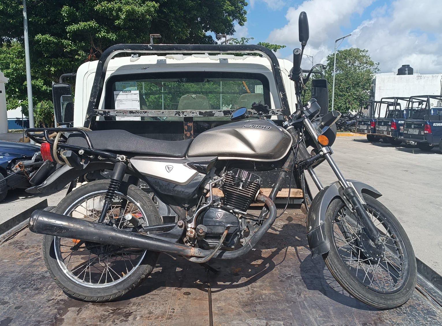 Oficiales de la Dirección de Tránsito y Vialidad arribaron a la calle 18 con avenida 90 donde encontraron una motocicleta marca Italika, color gris, con placas de circulación del estado de Quintana Roo.