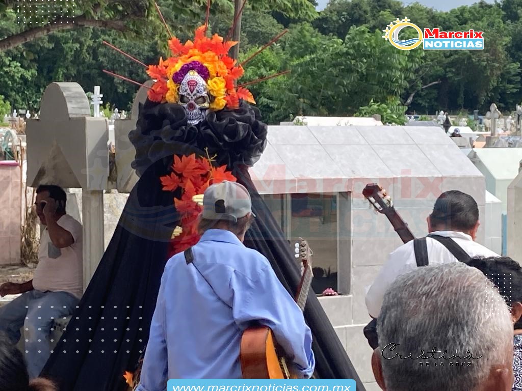 En una tumba cercana, jóvenes se tomaban unas cervezas para curarse la “cruz”; en esta ocasión las dos entradas -la principal y la que da a la Nichupté- estuvieron muy concurridas por los asistentes al panteón, quienes fueron recibidos por dos Catrinas, las cuales también les daban la despedida a los que se retiraban.