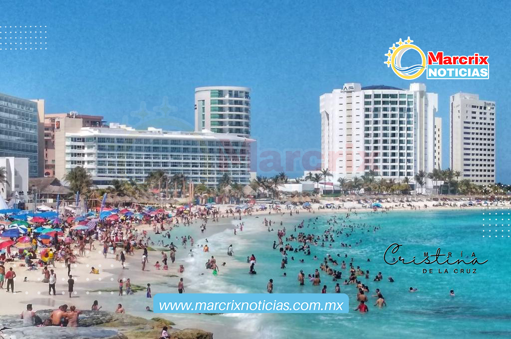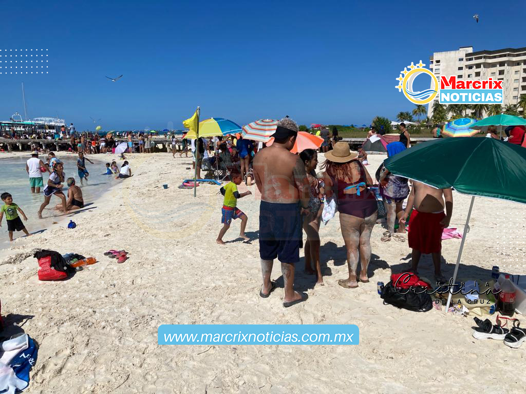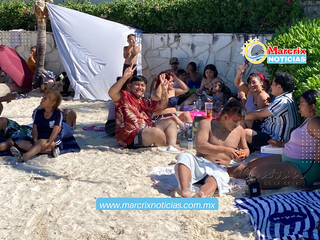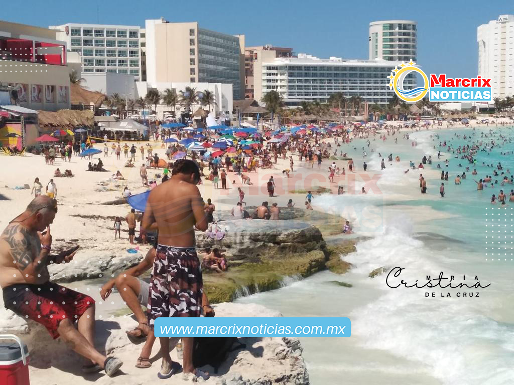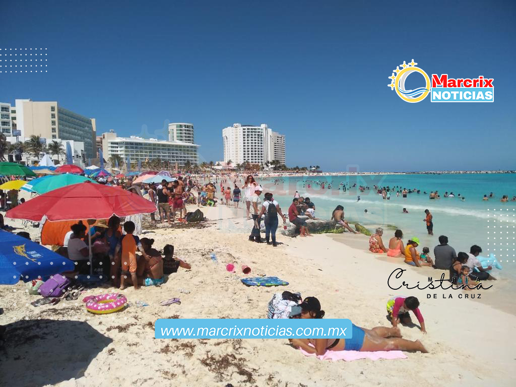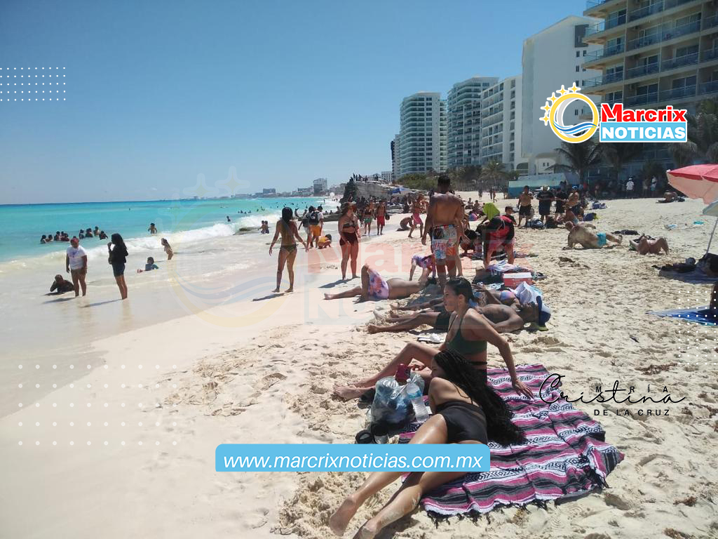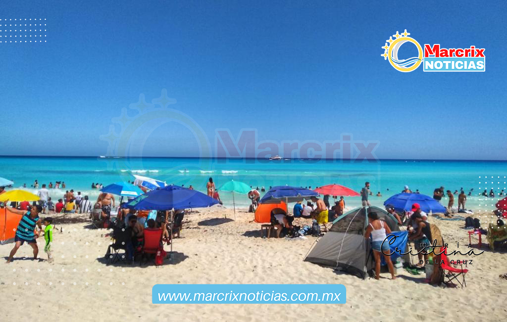 Cancún (Marcrix Noticias).-Turistas y cancunenses abarrotaron las playas de Cancún, una de ellas, Playa Langosta de Cancún en el último día de la Semana Mayor.
