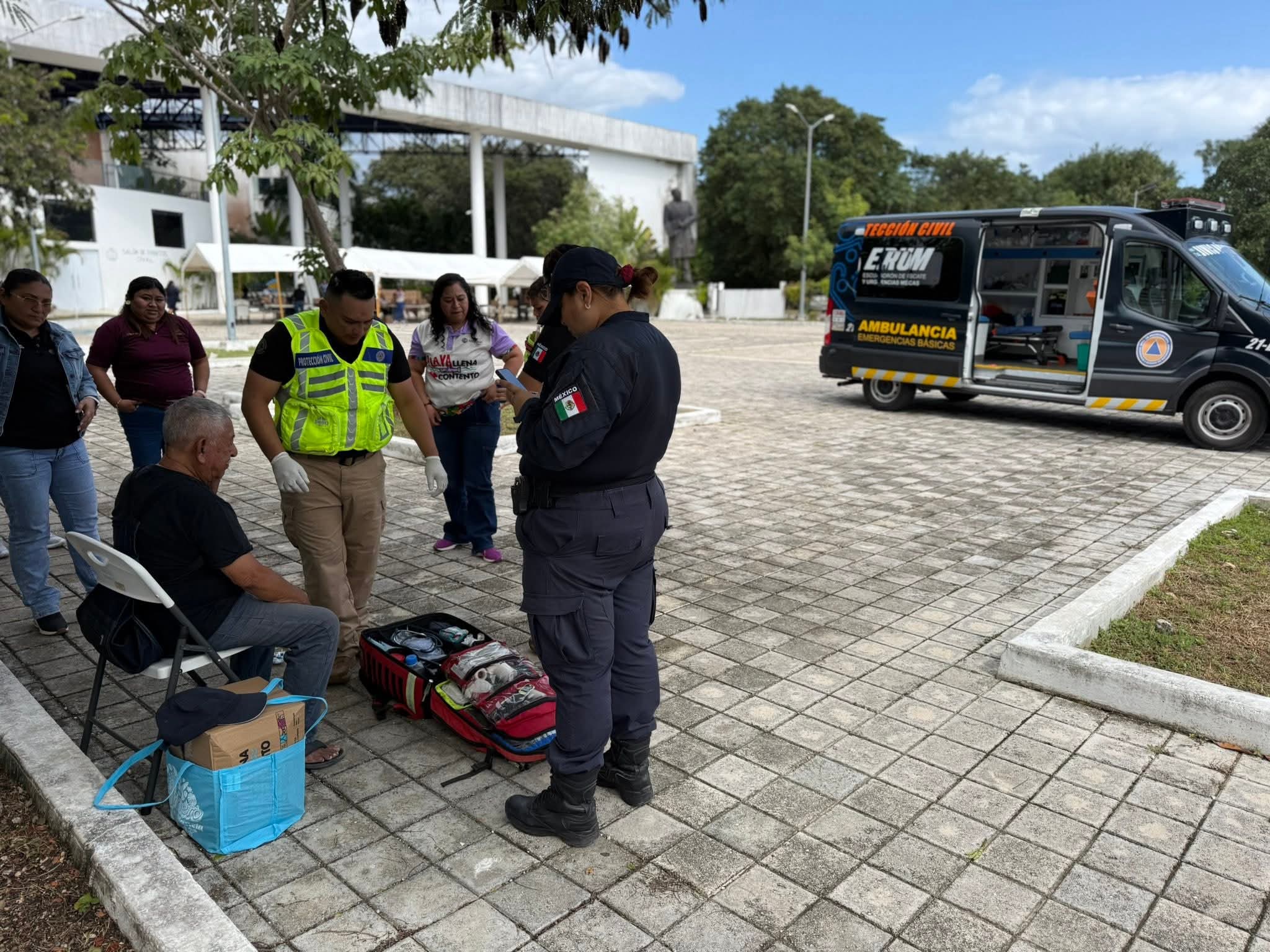 Playa del Carmen(Marcrix Noticias).- Un adulto mayor sufrió una caída accidental este en las inmediaciones del Palacio Municipal de Playa del Carmen, luego de acudir a recibir un apoyo social como parte de los programas de asistencia dirigidos a personas de la tercera edad.