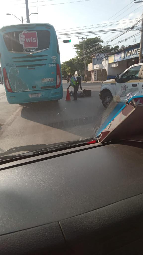 Y sobre el cruce de la Kabah con Cichén Itzá, un autobús atropelló a una persona, quien quedó tendida en plena vía pública.