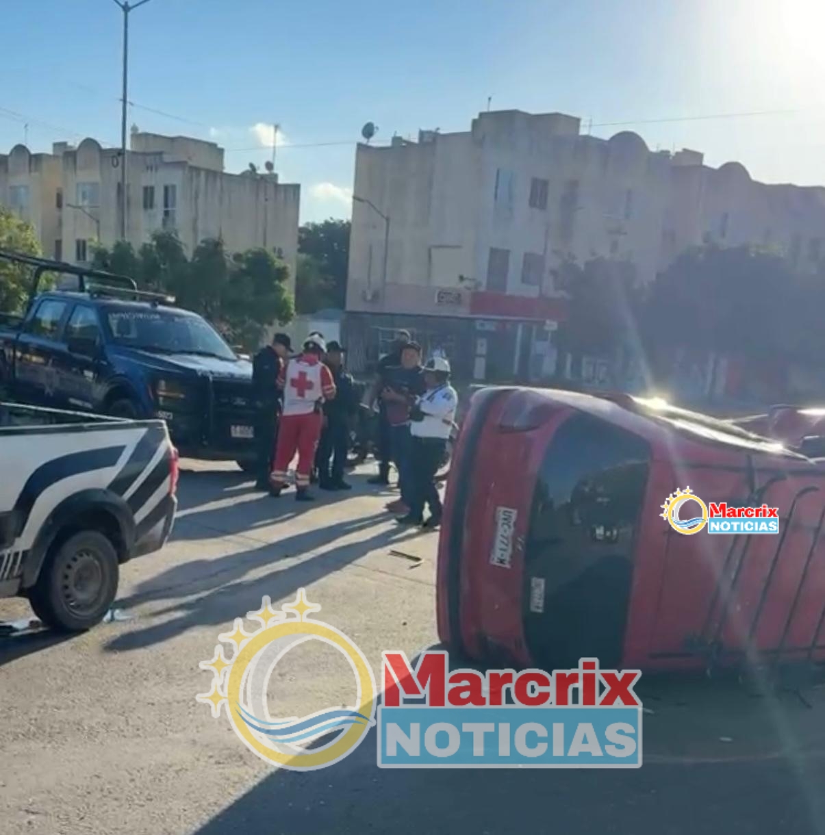Cancún. ( Marcrix Noticias).- Un fuerte accidente de tránsito se registró la mañana del 07 de enero de 2025 en el fraccionamiento Paseos del Mar, al cruce de las calles Isla Haití con Isla Obsidiana, donde un automóvil terminó volcado luego de ser impactado por una camioneta, lo que movilizó a cuerpos de emergencia y autoridades viales.