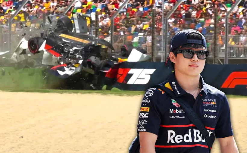 El incidente ocurrió cuando el piloto japonés perdió el control de su monoplaza Red Bull al rozar el bordillo interior de una curva a la izquierda. Esto lo llevó a impactar contra las barreras de protección, causando incluso que el coche volcara brevemente antes de volver a quedar sobre sus ruedas.
