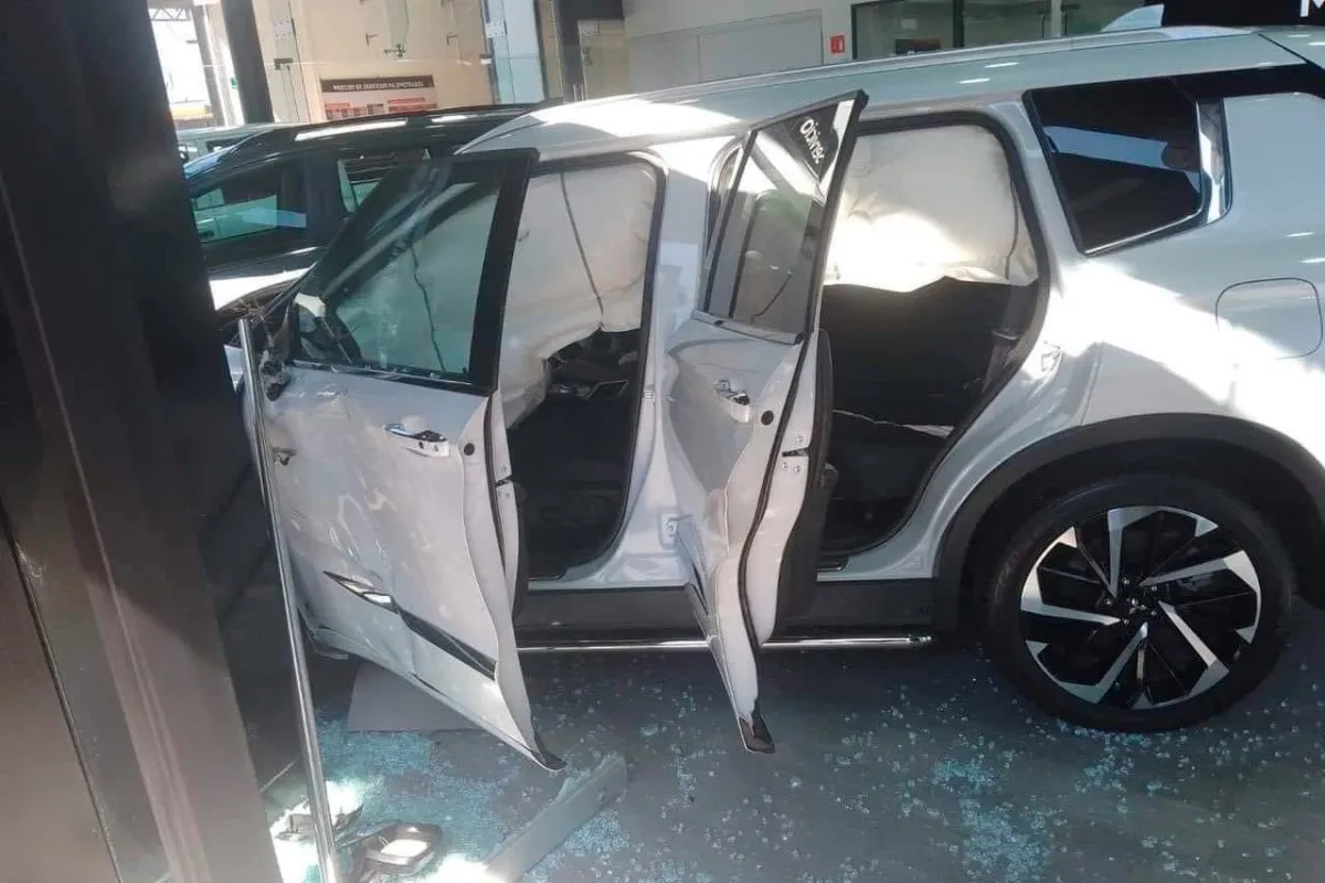 Los daños incluyeron el vehículo en prueba y otros dos en exhibición. La colisión con el pilar de acero evitó daños más graves a la infraestructura de la agencia y su inventario.