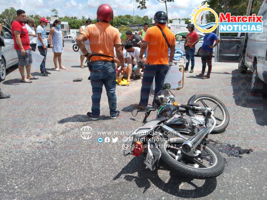 Cancún (Marcrix Noticias).- Una mujer y una menor de edad resultaron lesionadas luego del percance vehicular que protagonizaron esta mañana en el arco norte y avenida Chacmol ambas viajaban en una moto cuando chocaron contra el auto de un conductor.