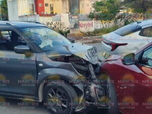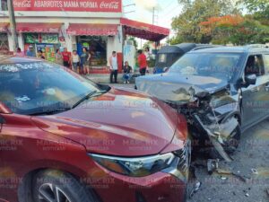 Tres vehículos colisionaron en la Supermanzana 222, en las inmediaciones del fraccionamiento Los Héroes, dejando como saldo tres personas heridas