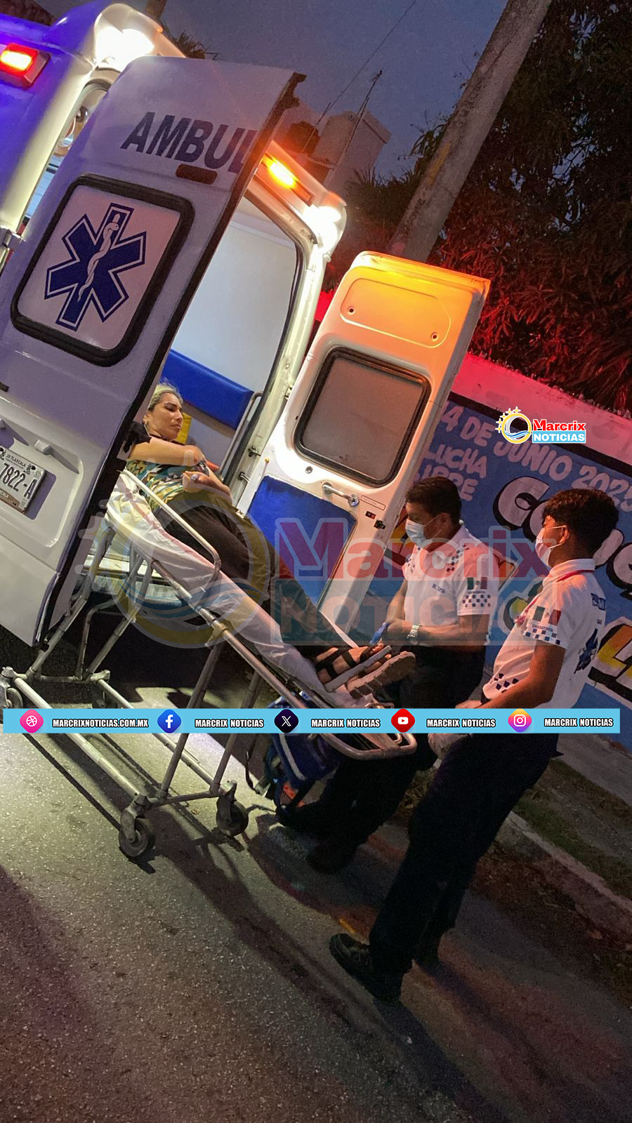 Cancún (Marcrix Noticias).- Un aparatoso accidente se registró alrededor de las 19:00 horas en la manzana 215 de la calle Agustín Melgar, en el fraccionamiento Los Héroes, dejando como saldo una mujer lesionada y severos daños materiales.