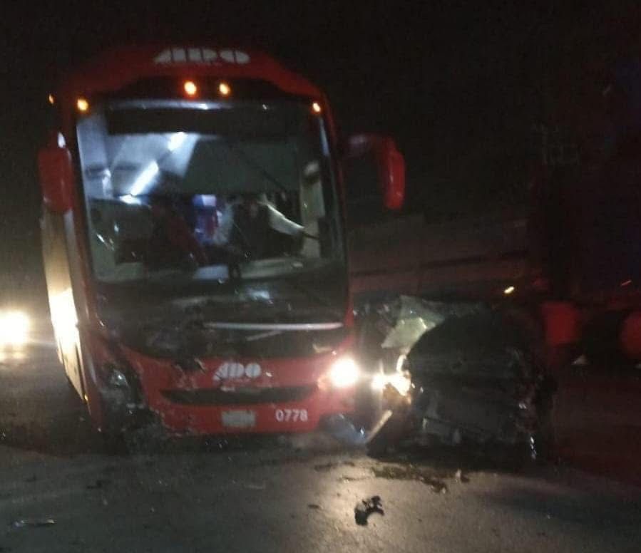 Cancún (Marcrix Noticias)- Un trágico accidente de tránsito ocurrió la madrugada del viernes 13 de diciembre en el cruce de la avenida José López Portillo y la carretera Gas Auto. Un automóvil ignoró la luz roja del semáforo y fue impactado por un autobús de pasajeros de la empresa ADO, resultando en la muerte del copiloto del vehículo.