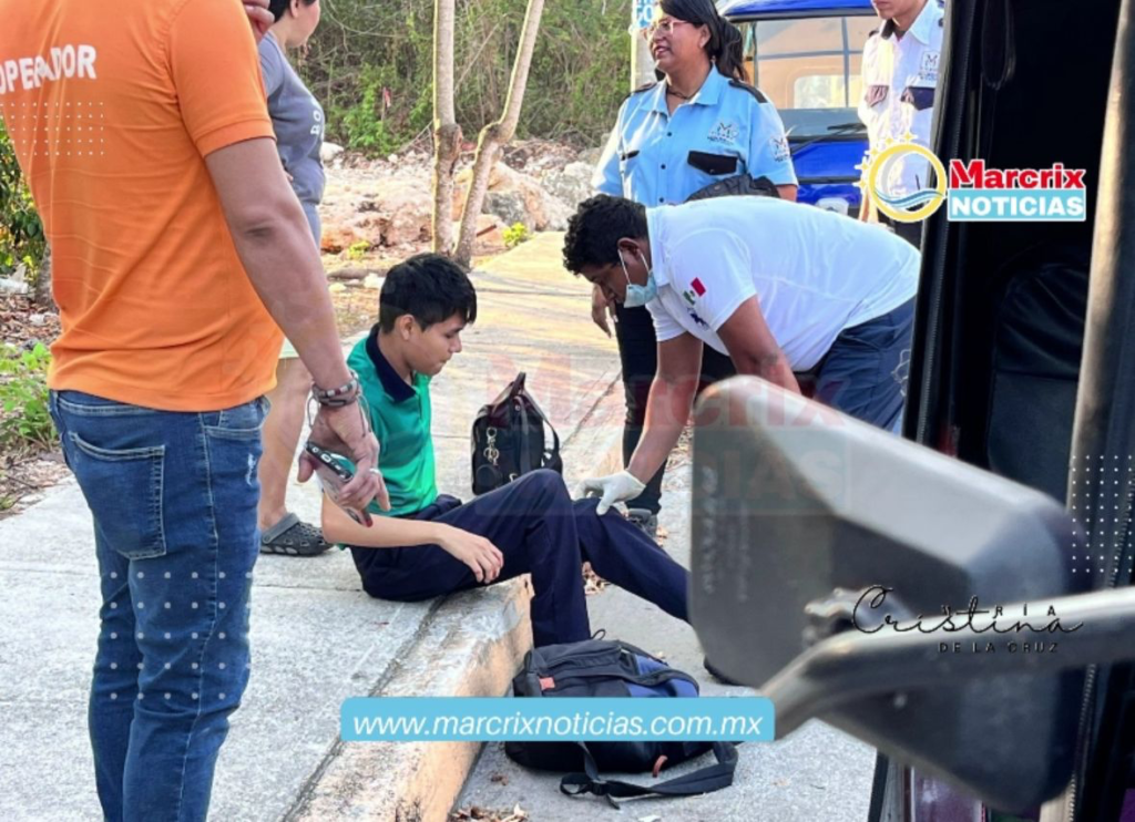 Cancún (Marcrix Noticias)-Un accidente en la zona de los fraccionamientos sac be y turquesa en Cancún dejó a un motociclista y a un menor lesionados. Según testigos, el menor, quien se dirigía hacia el Conalep, bajó de una combi y corrió para cruzar la avenida.