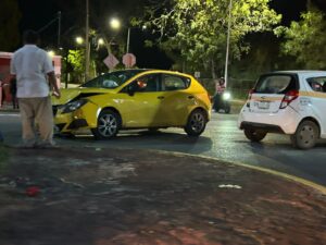 Chetumal (Marcrix Noticias).- Un fuerte accidente vehicular aconteció frente a la Casa de Gobierno en Chetumal, entre un automóvil particular y un taxi del SUCHA.
