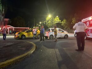Chetumal (Marcrix Noticias).- Un fuerte accidente vehicular aconteció frente a la Casa de Gobierno en Chetumal, entre un automóvil particular y un taxi del SUCHA.