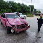 El vehículo particular color rojo circulaba sobre la avenida Colosio y al llegar a la avenida Búhos, el conductor de la camioneta sale desde el camellón y se atraviesa, por lo que es impactado en la llanta trasera del lado derecho.