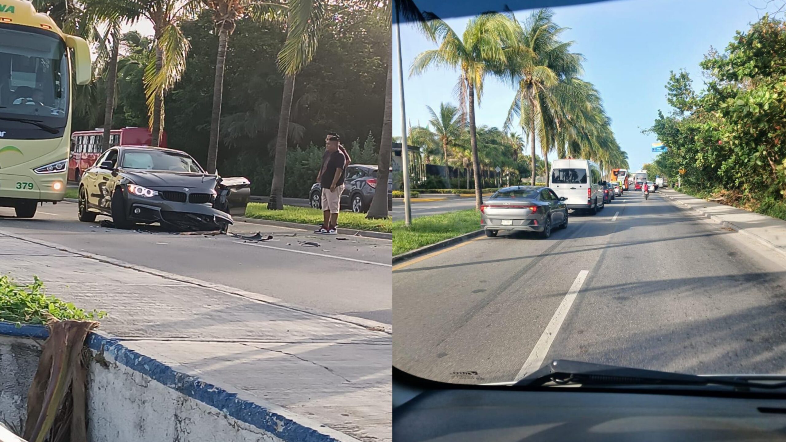 Sobre el Bulevar Colosio de Cancún también hubo accidentes, por ejemplo, subiendo al aeropuerto un automóvil terminó cruzando de carril.