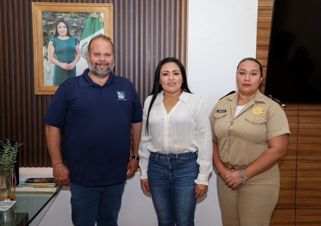 Puerto Morelos (Marcrix Noticias)— La presidenta municipal Blanca Merari Tziu Muñoz recibió en su despacho a la nueva Capitana de Puerto, Yuliana Guadalupe Velázquez González, con quien acordó poner en marcha diversas medidas para ordenar la actividad náutica y ofrecer mayor seguridad a los pescadores y visitantes de Puerto Morelos.