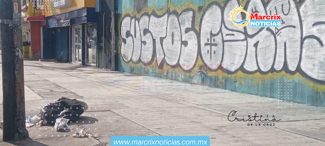Desde el área del Crucero se empiezan a ver las bolsas de basura que comerciantes y habitantes del lugar dejan en la banqueta para que el carro recolector de la basura se las lleve, sin embargo, cuando no pasa el citado camión los desechos quedan abandonados y los perros y gatos en condición de calle las abren para buscar comida dentro de ellas, lo que genera un foco de infección.