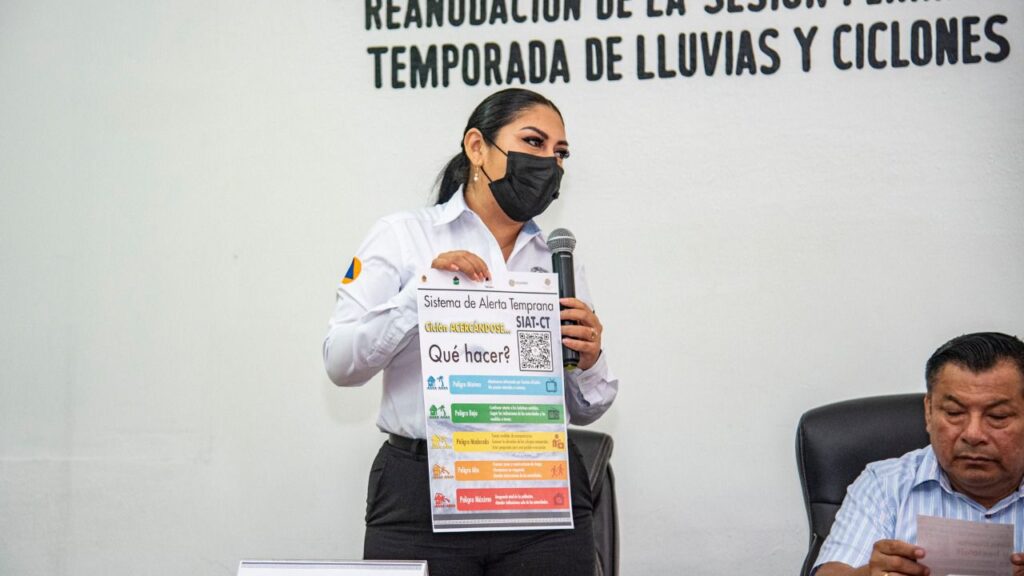 En su oportunidad, la coordinadora de Protección Civil en Tulum, Jessica Jaqueline Martínez Barrios, indicó que la instrucción del edil ha sido clara, coordinación institucional en aras de crear acciones de gestión integral de riesgo ante la población y visitantes y reducir peligros que se generen por la amenaza de algún fenómeno hidrometeorológico “Tulum las cumple”.