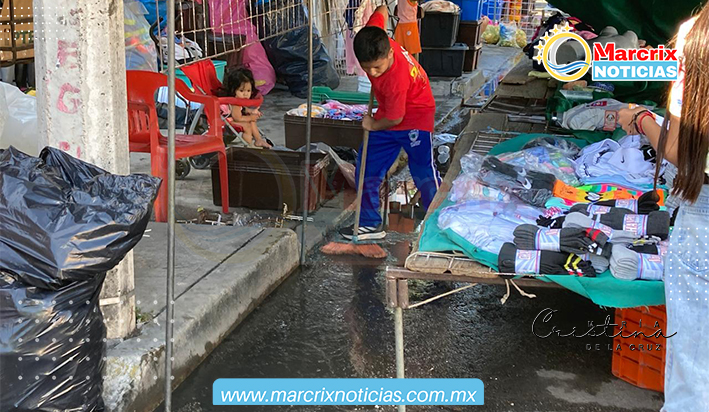 Comerciantes que fueron afectados, por el mal tiempo debido a la lluvia que provocó que no llegarán los clientes deseados al centro de abasto popular antes citado.