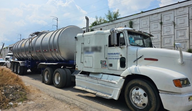 Al acercarse a la cabina del tráiler, los integrantes de la Guardia Nacional se percataron de un fuerte olor a hidrocarburo y solicitaron al conductor de la unidad los documentos de acreditación de la carga, pero no pudo comprobar el origen legal del combustible, por lo que fue detenido.