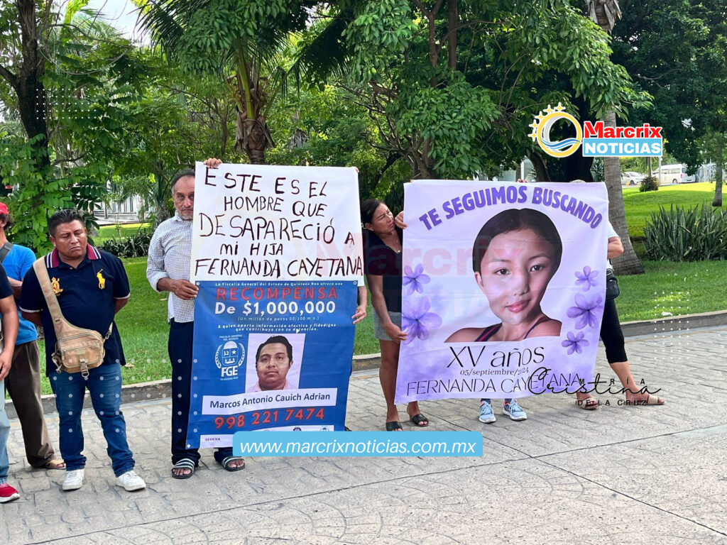 Cancún (Marcrix Noticias).- Hoy 5 de septiembre, Fernanda Cayetana estaría cumpliendo 15 años de edad, por lo que Daysi Blanco, madre de la menor, protestó junto con familiares, amigos y madres buscadoras con un bloque y cerrando las instalacions de la Fiscalñia sobre la avenida Tulum de Cancún.