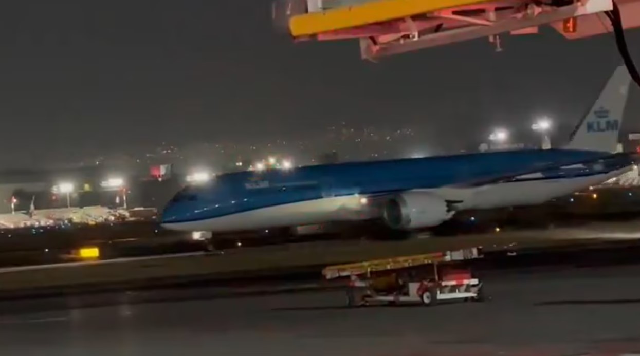 Usuarios y medios de comunicación en la plataforma X reportaron que la aeronave, proveniente de Ámsterdam, aterrizó de emergencia debido a una supuesta falla en el tren de aterrizaje.